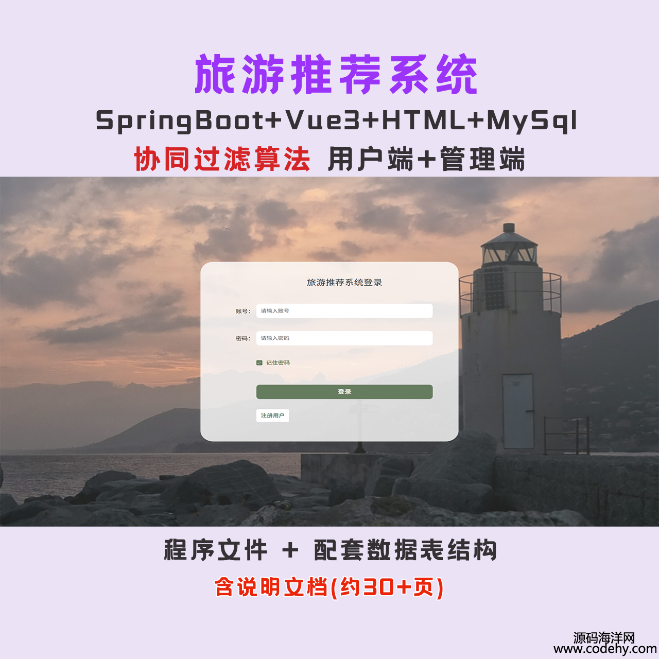 9135-含文檔 協同過濾算法旅游推薦系統 SpringBoot+Vue3 含部署說明