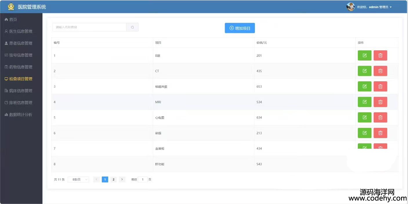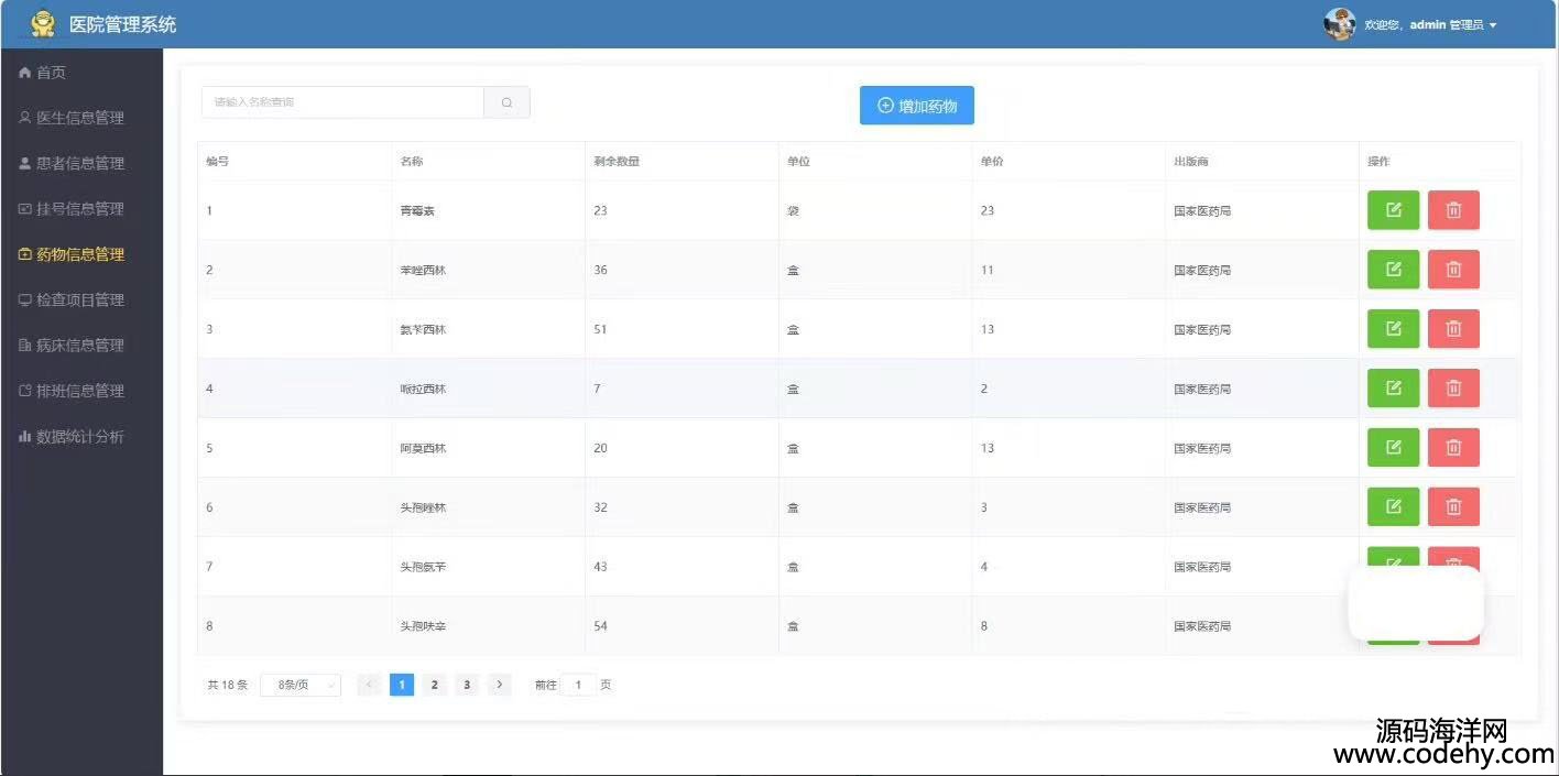 管理員:登錄、醫(yī)生信息管理、患者信息管理、掛號(hào)信息管理、藥物信息管理、檢查項(xiàng)目管理、病床信息管理、排班信息管理、數(shù)據(jù)統(tǒng)計(jì)分析